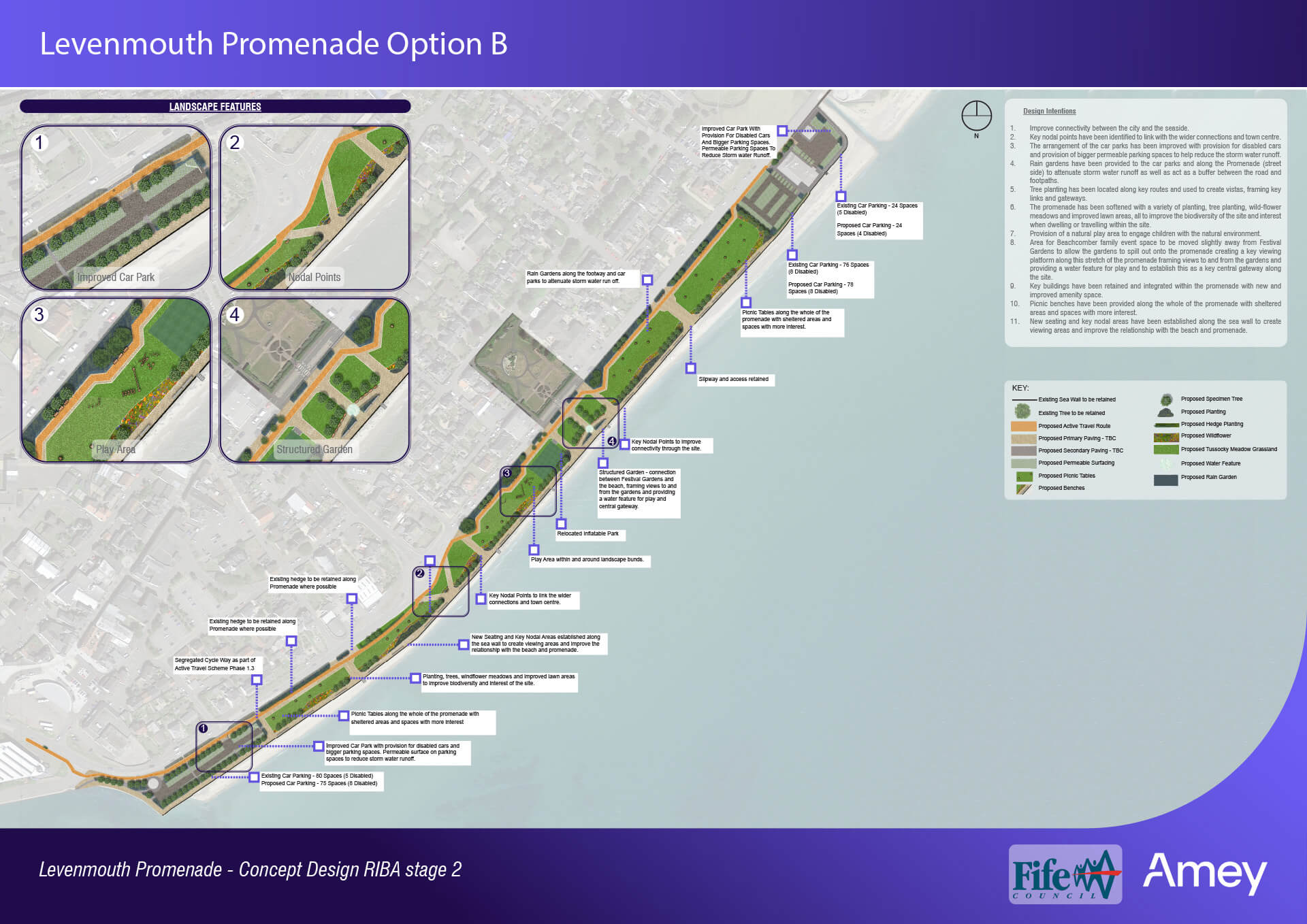 With that in mind, there is a local aspiration for comprehensive improvements to Leven Promenade, including active travel provision, landscaping improvements, provision of a new skate park, and improvements to parking areas.