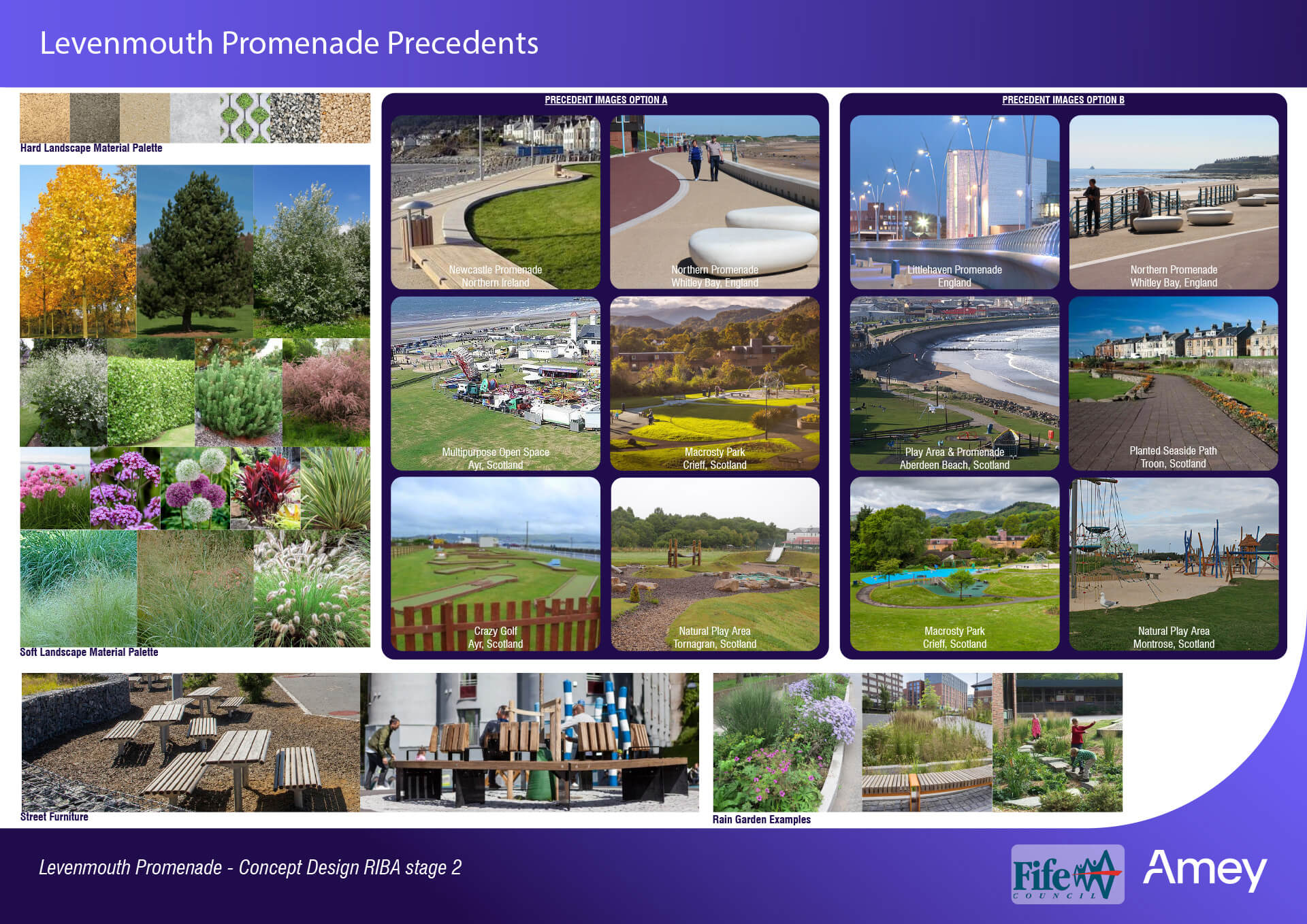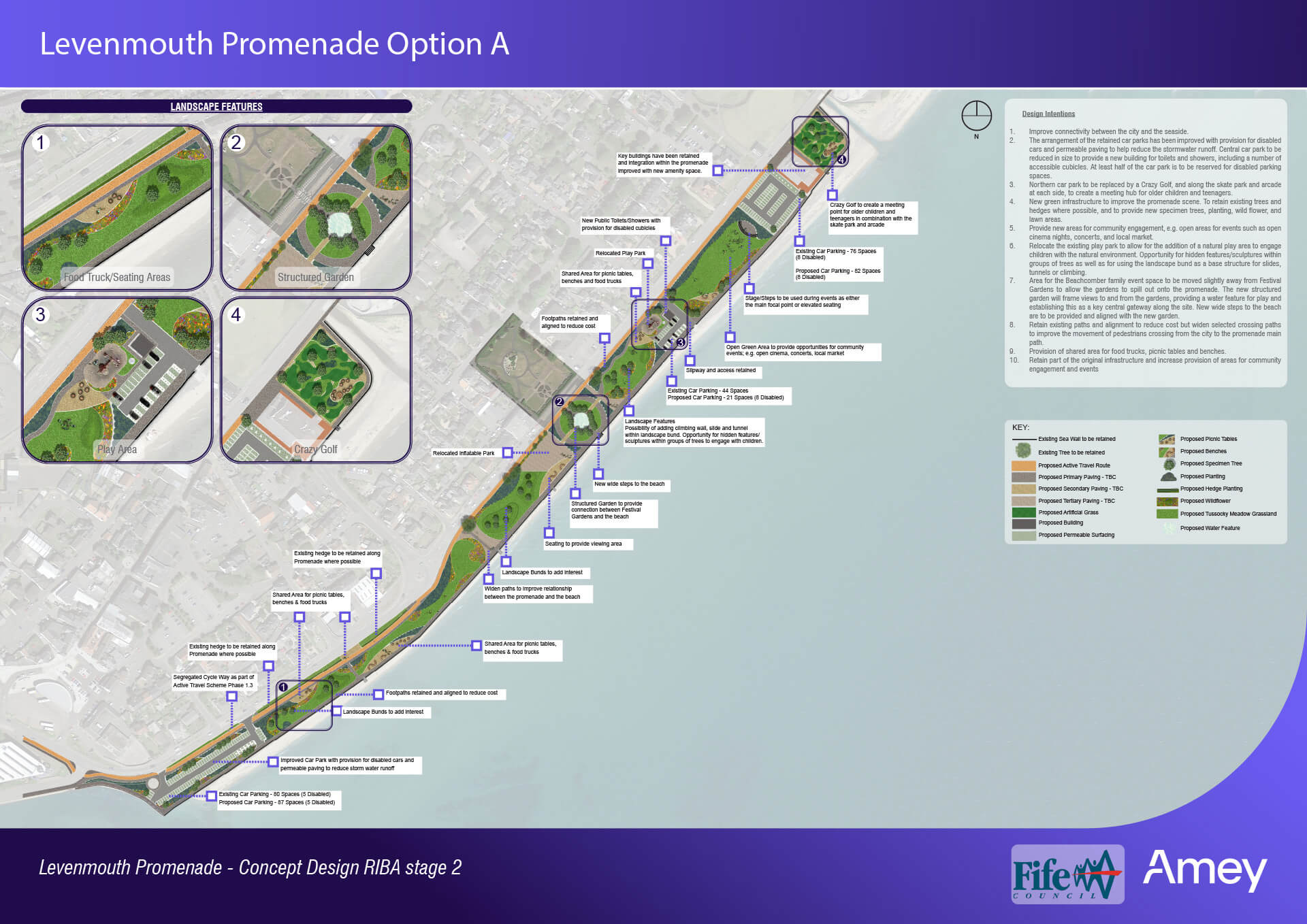 Amey Consulting has drawn up two potential design schemes, Options A and B, both of which intend to increase the space for promenade users and improve active travel (walking and cycling) connections along the promenade, linking to the town centre, visitor attractions, the Fife Coastal Path and the new Leven Rail Station.